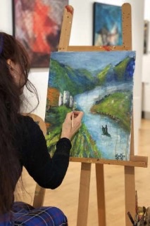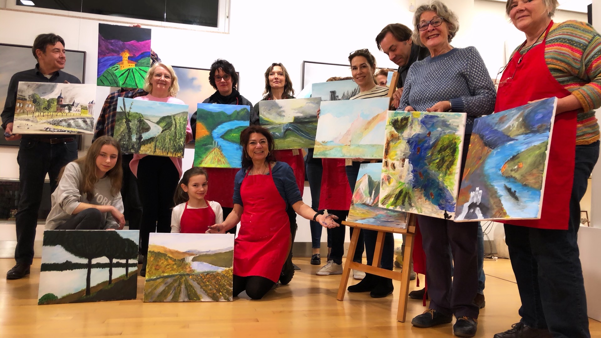 In „Art Night at the Gallery“, the class will have a general theme, such as „Rheinromantik“, and the participants will choose their own style of painting.