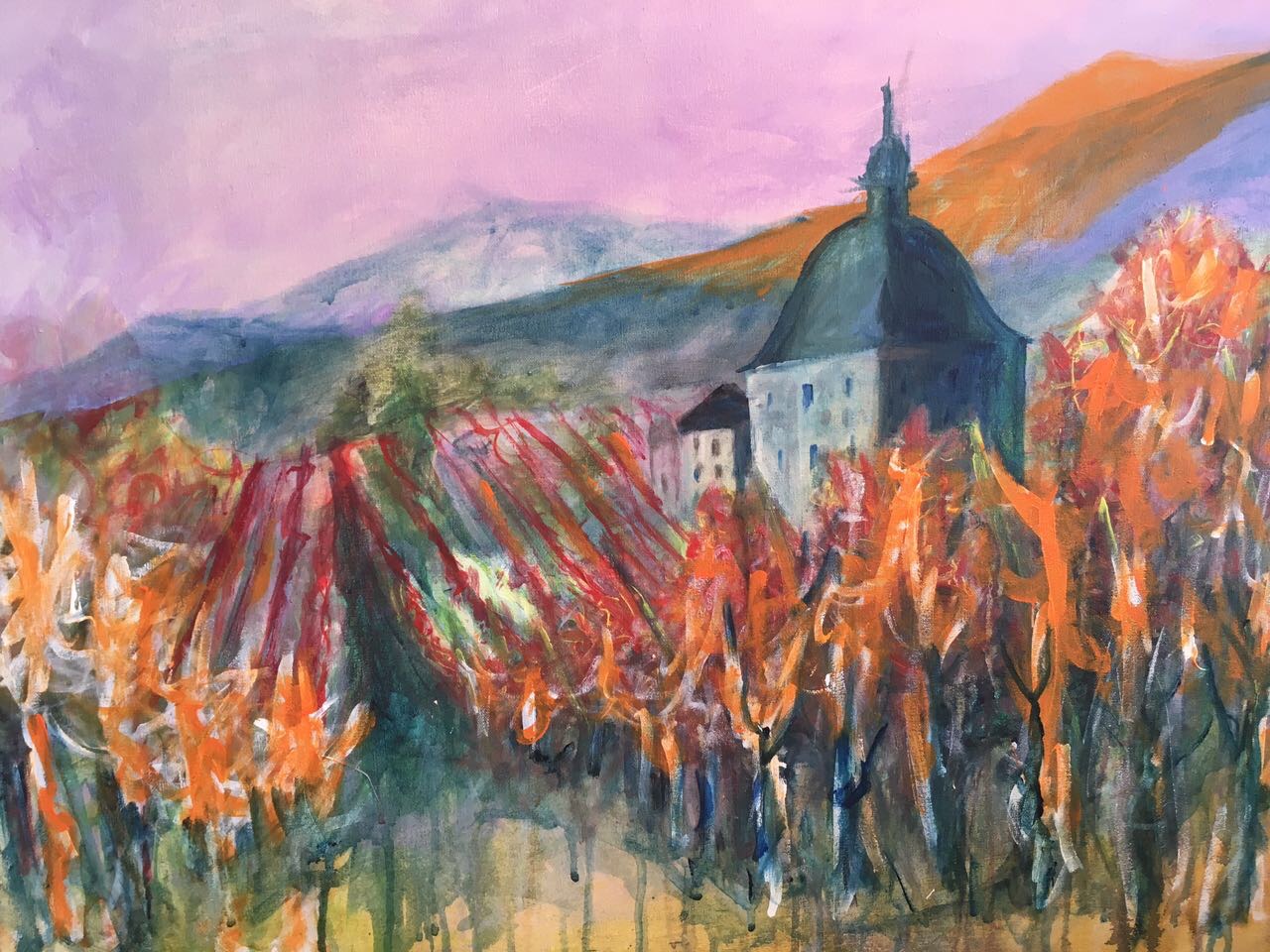 click on image to zoom "Großer Weinberg", acrylic on canvas, 130 x 140 cm, available "Roter Hang", oil on canvas, 88 x 88 cm, available "Church at the river Rhein", acrylic on canvas, 60 x 80 cm "Burg Rheinfels", acrylic on canvas, 130 x 110 cm, available "Castle Vollrads in autumn", acrylic on canvas, 60 x 80 cm "Russische Kapelle" (rusian chapel), acrylic on canvas, 80 x 60 cm "Rochuskapelle", acrylic on canvas, 65 x 81 cm Greek island, water colors, sold "Neptun", Acrylic on canvas, oil and acrylic colors on canvas, 125 x 100 cm, available "Sonnenuntergang"(sun set), water color on paper, 47 x 62, sold "aufgewühlt"(agitated), water colors on paper, 47 x 62 cm "Große Welle" (big wave), acrylic on canvas, 230 x 140 cm, 4 panels